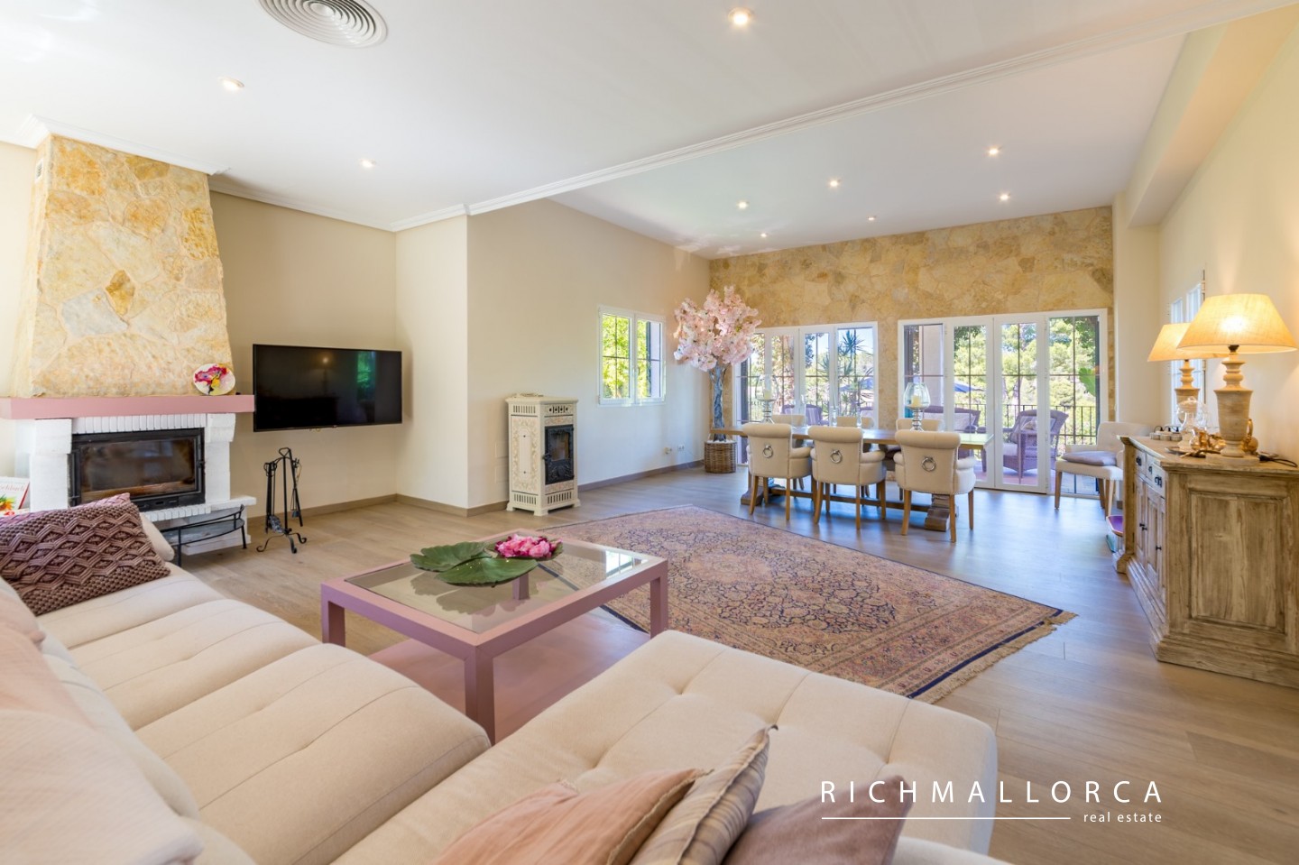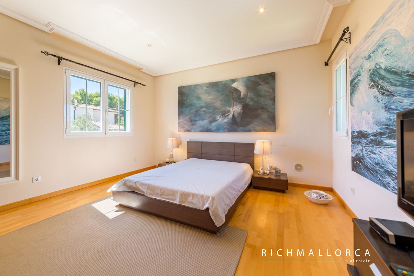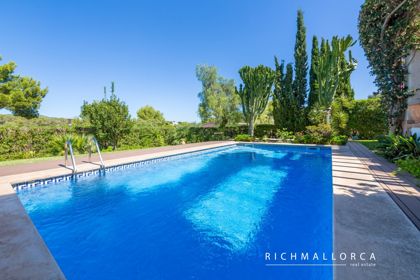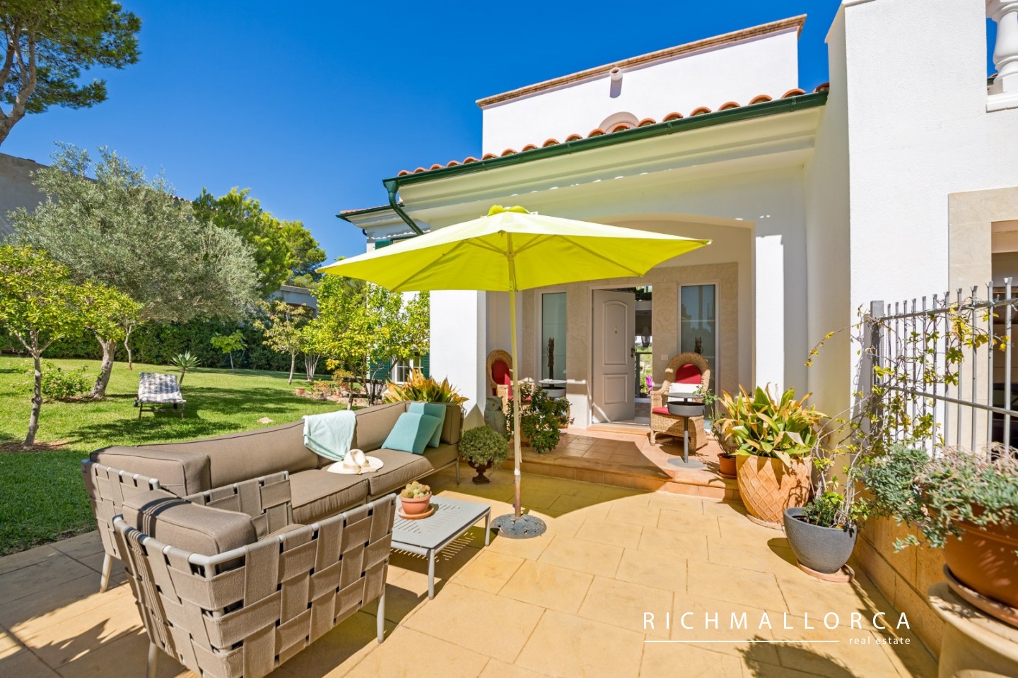 Zu verkaufen schönes Haus auf einem malerischen Grundstück in eine geschlossene Wohnanlage in Cala Vinyes. Auf den 2 Etagen des Hauses sind ein geräumiges Wohnzimmer, Esszimmer mit Kamin und Panoramafenster mit Blick auf den Garten, voll ausgestattete Küche mit Premium-Geräten, 3 Schlafzimmer mit Bad, Gäste-WC, Lagerung und Zugang zur Terrasse mit Garten und Pool, und eine Garage für 2 Autos. Zur Ausstattung gehören hochwertige Laminatböden, Kamin, Infrarot-Heizpaneele in den Schlafzimmern, Jacuzzi im Hauptschlafzimmer. Garten mit Schwimmbad und angenehme Landschaftsgestaltung. Das Haus befindet sich in einer bewachten Anlage mit privaten Villen in einer ruhigen Gegend der Insel und mit ausgezeichneten Verbindungen zu Schulen, Geschäften und Sportvereinen.