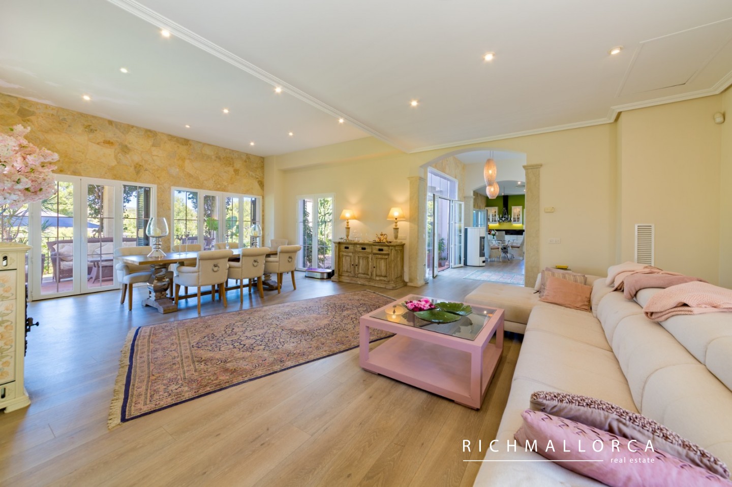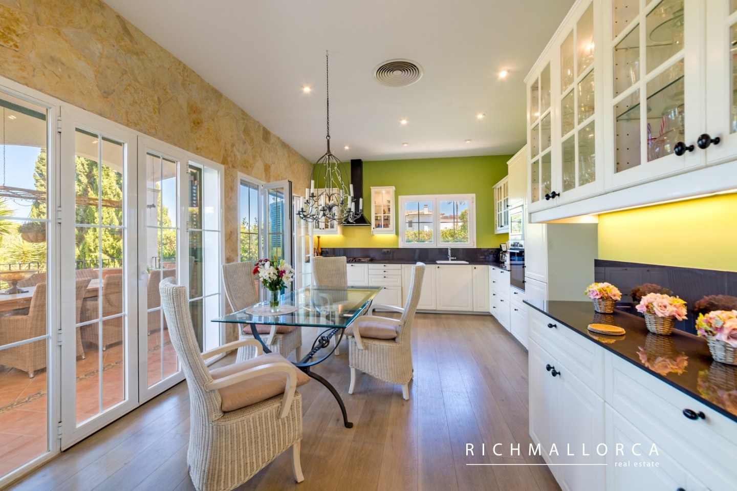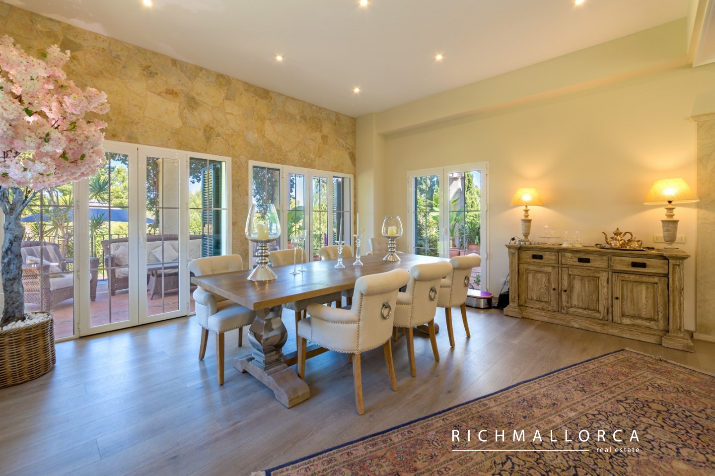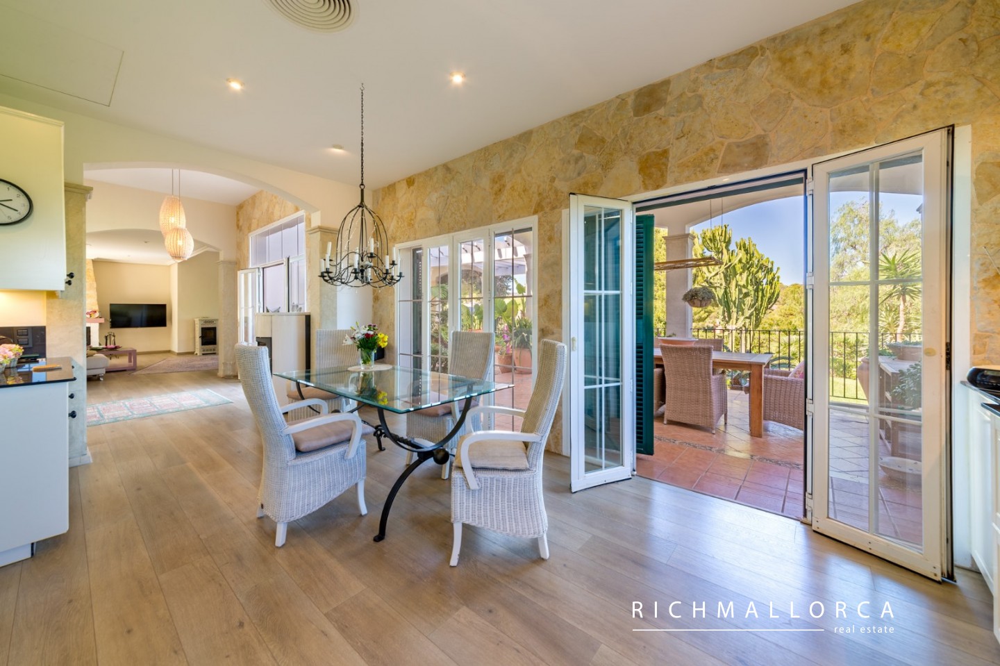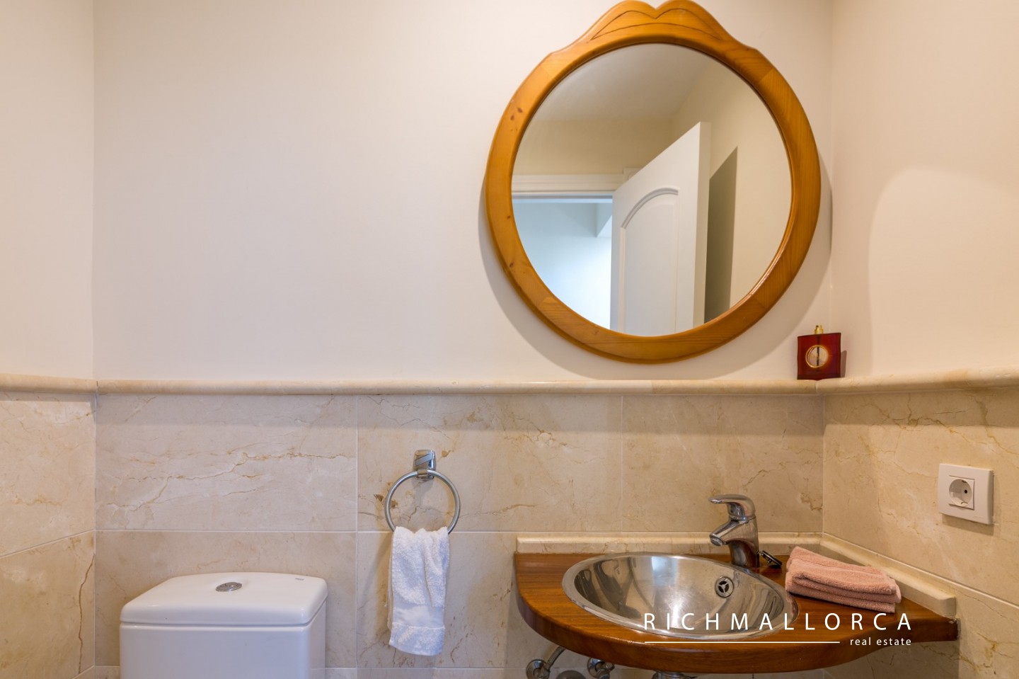 Zu verkaufen schönes Haus auf einem malerischen Grundstück in eine geschlossene Wohnanlage in Cala Vinyes. Auf den 2 Etagen des Hauses sind ein geräumiges Wohnzimmer, Esszimmer mit Kamin und Panoramafenster mit Blick auf den Garten, voll ausgestattete Küche mit Premium-Geräten, 3 Schlafzimmer mit Bad, Gäste-WC, Lagerung und Zugang zur Terrasse mit Garten und Pool, und eine Garage für 2 Autos. Zur Ausstattung gehören hochwertige Laminatböden, Kamin, Infrarot-Heizpaneele in den Schlafzimmern, Jacuzzi im Hauptschlafzimmer. Garten mit Schwimmbad und angenehme Landschaftsgestaltung. Das Haus befindet sich in einer bewachten Anlage mit privaten Villen in einer ruhigen Gegend der Insel und mit ausgezeichneten Verbindungen zu Schulen, Geschäften und Sportvereinen.