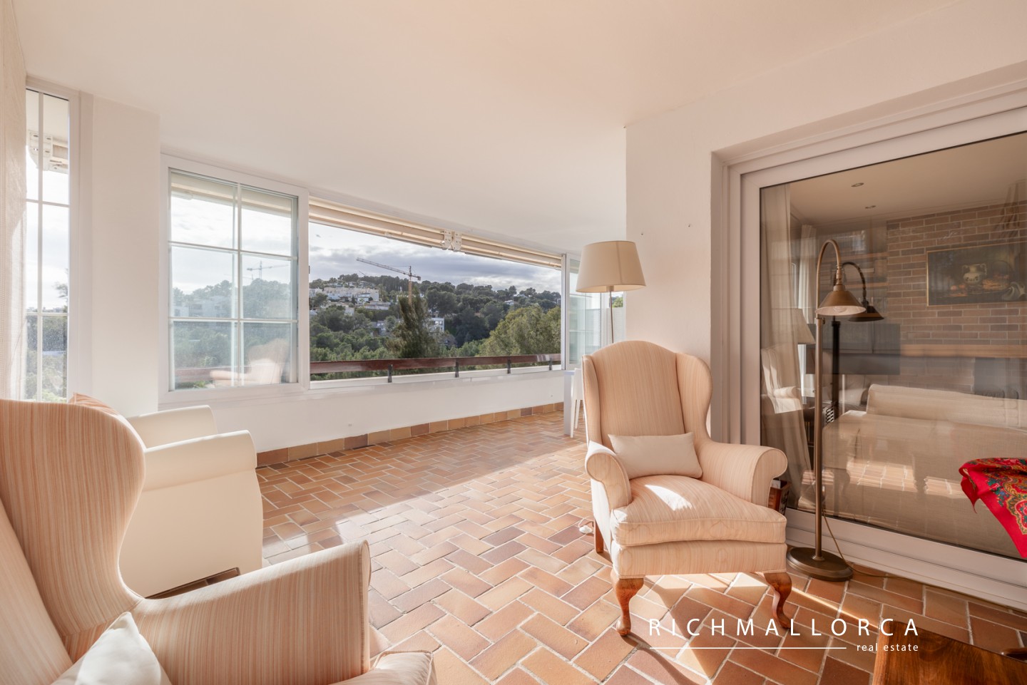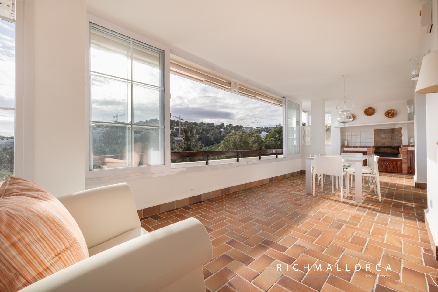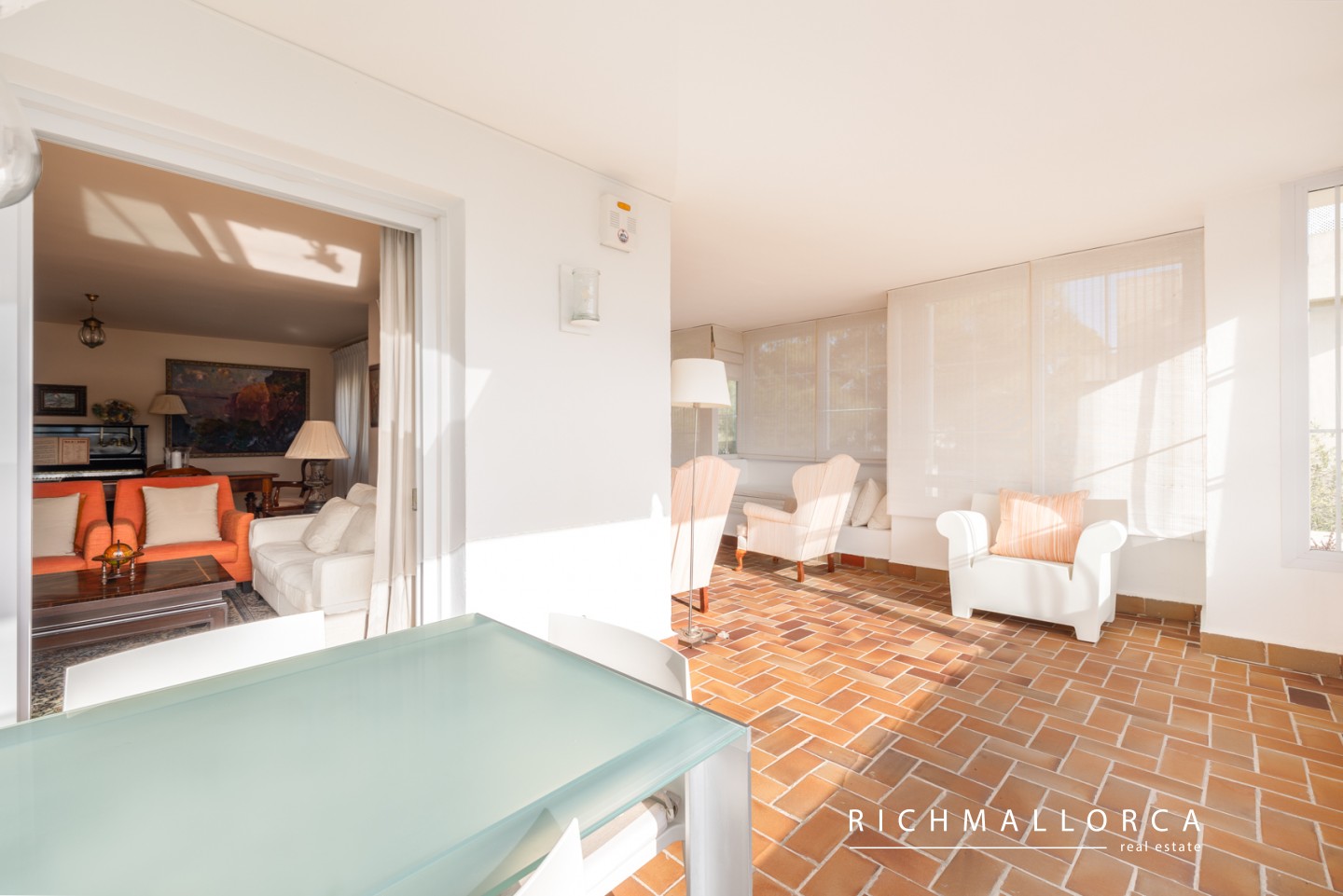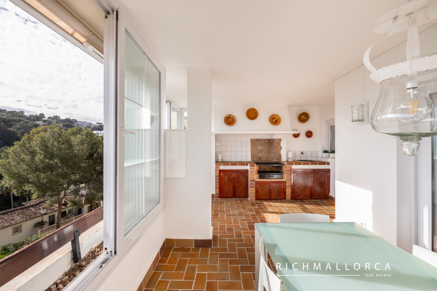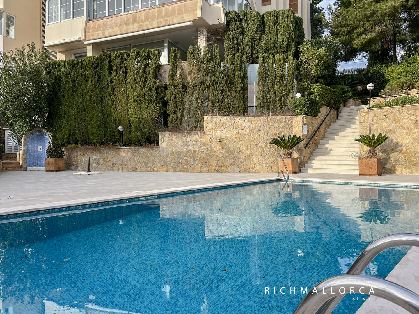A secondary entrance provides direct access to a pine forest, perfect for relaxing walks. The beach, Port Calanova marina, shops, restaurants, and public transport are all within easy walking distance.