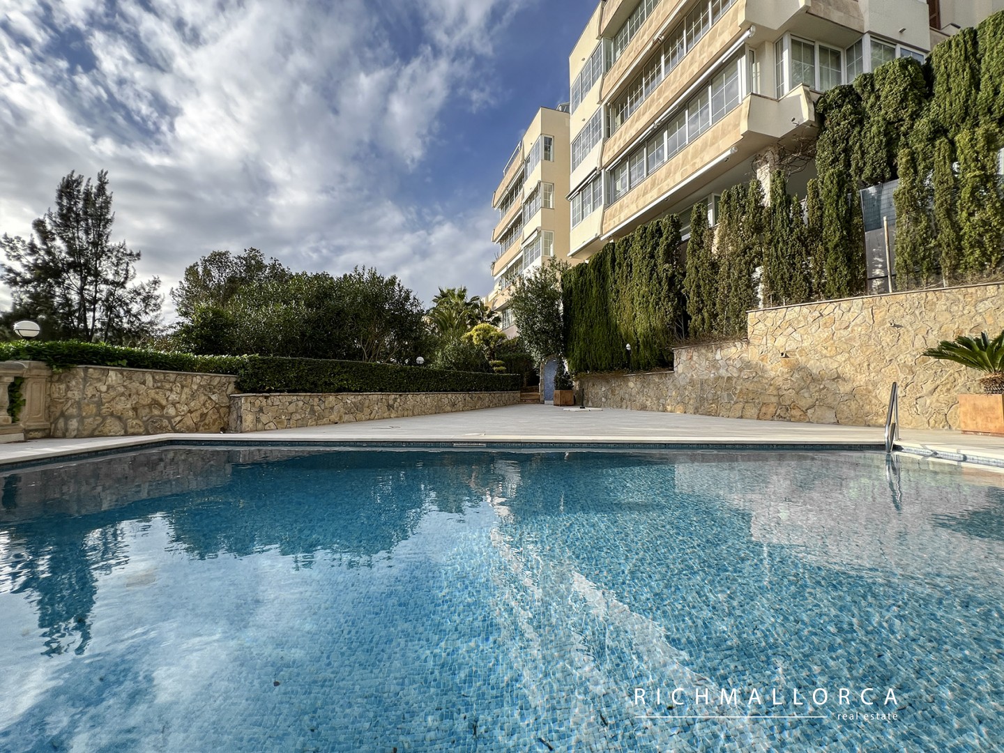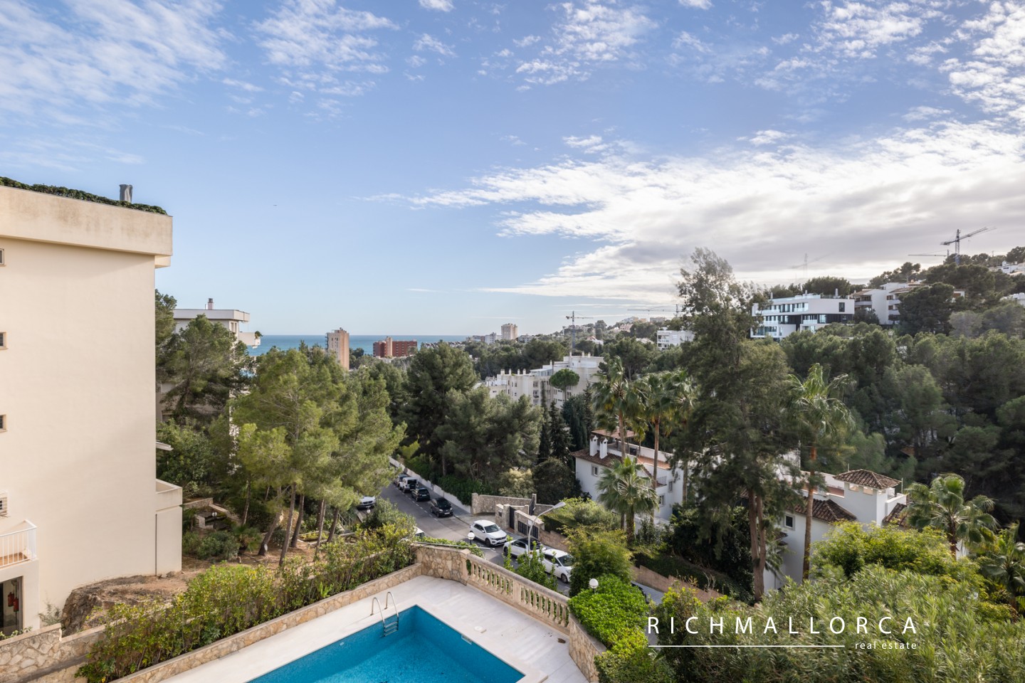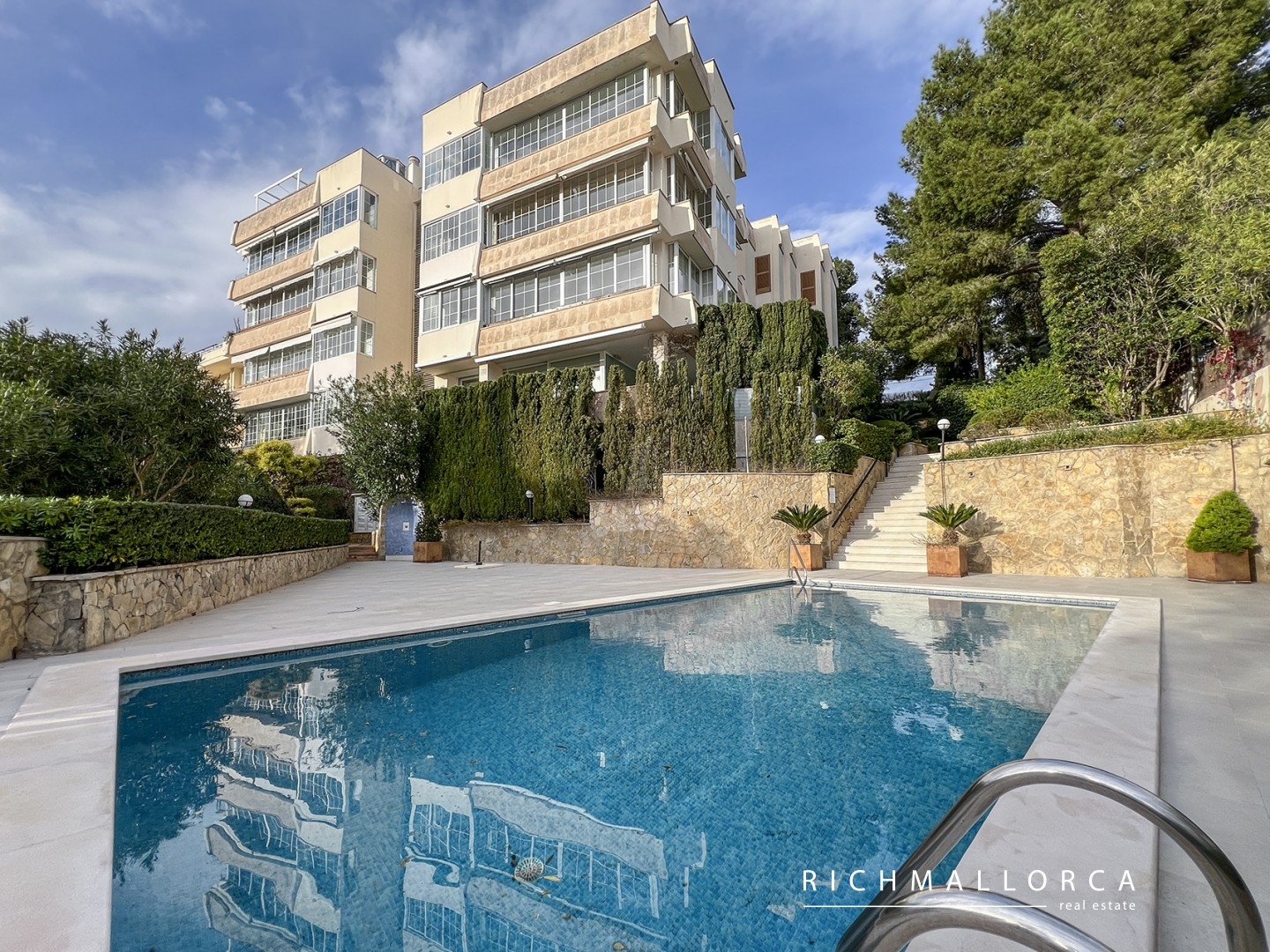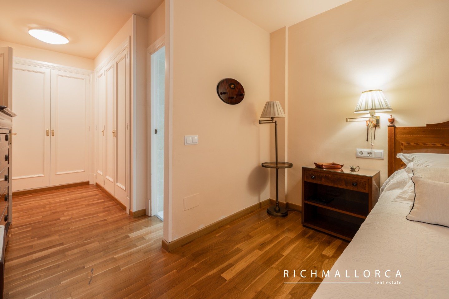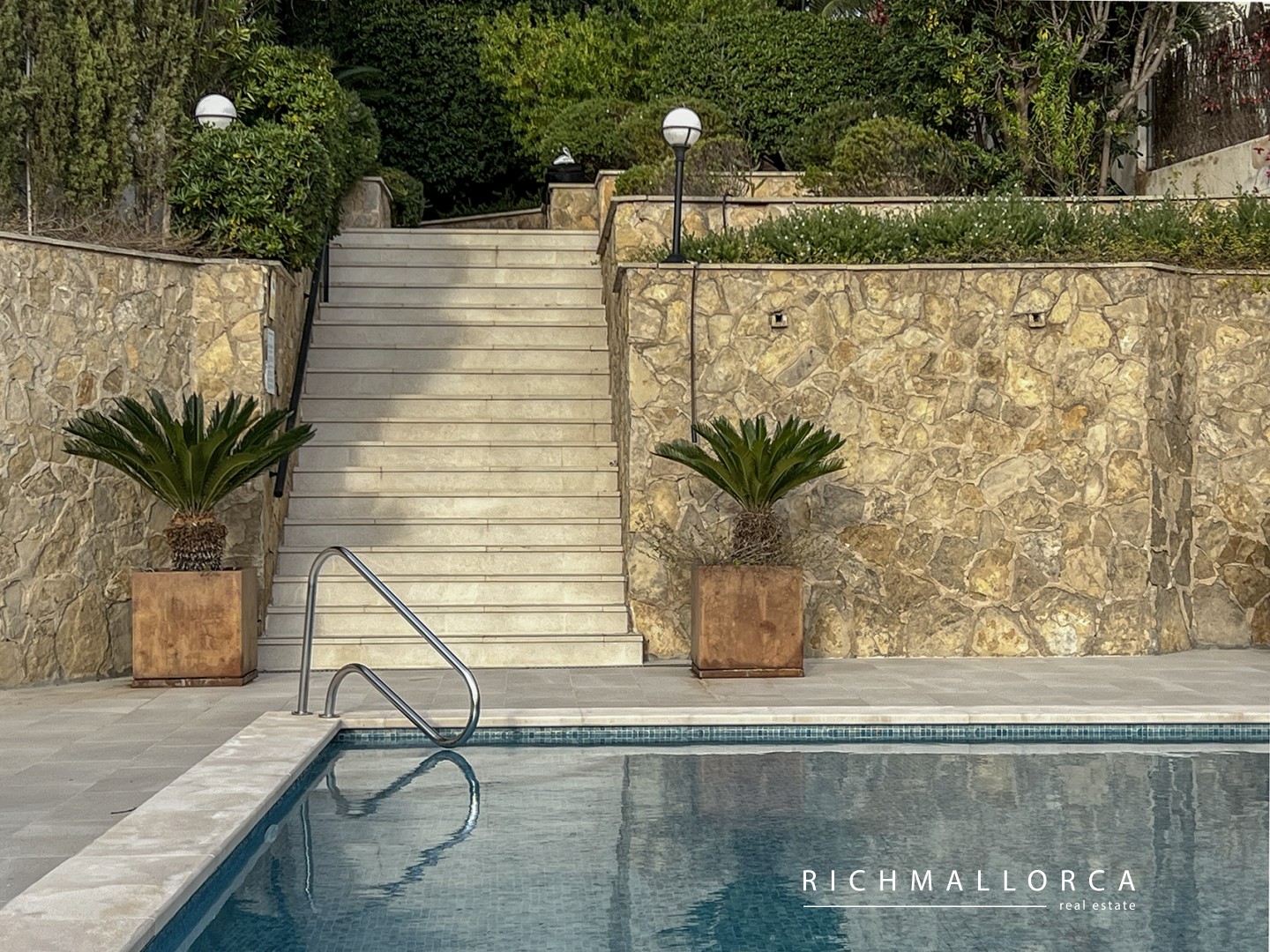 A secondary entrance provides direct access to a pine forest, perfect for relaxing walks. The beach, Port Calanova marina, shops, restaurants, and public transport are all within easy walking distance.
