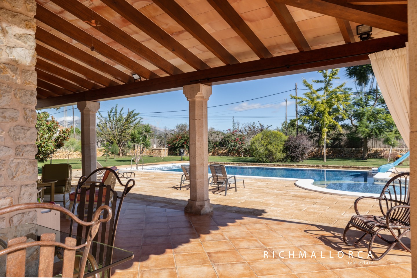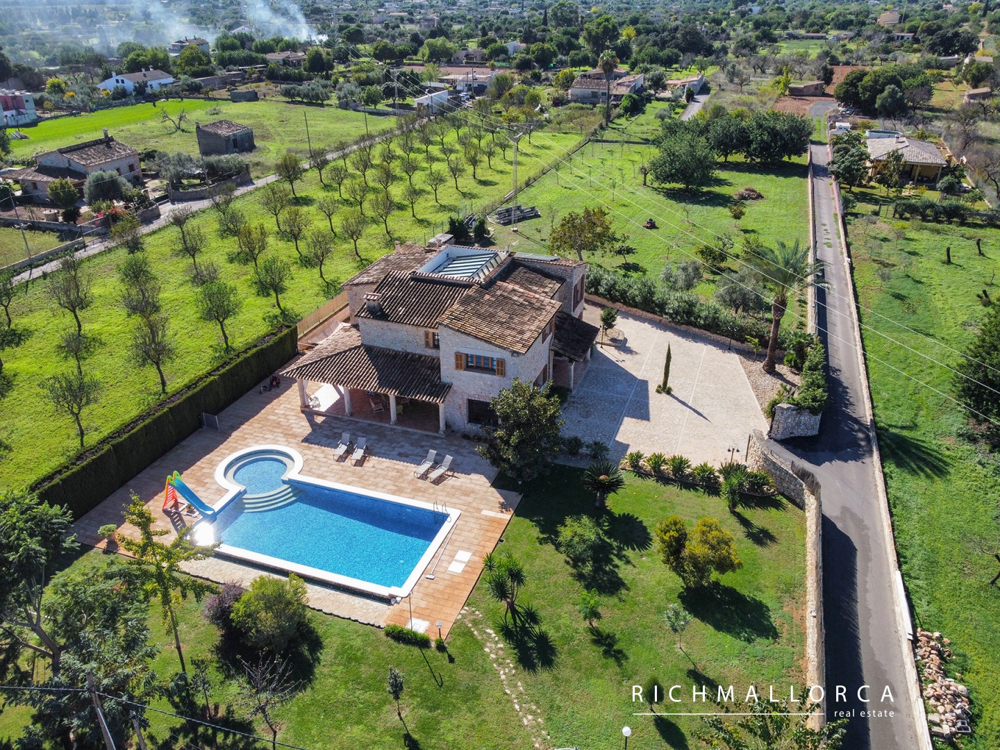 High-quality construction from 1999 includes Mallorcan stone cladding, double-glazed windows, diesel central heating, air conditioning, solar panels, fibre-optic internet and dual water supply. Ideal as a permanent residence, holiday home or rental investment. The house has a valid cédula de habitabilidad.