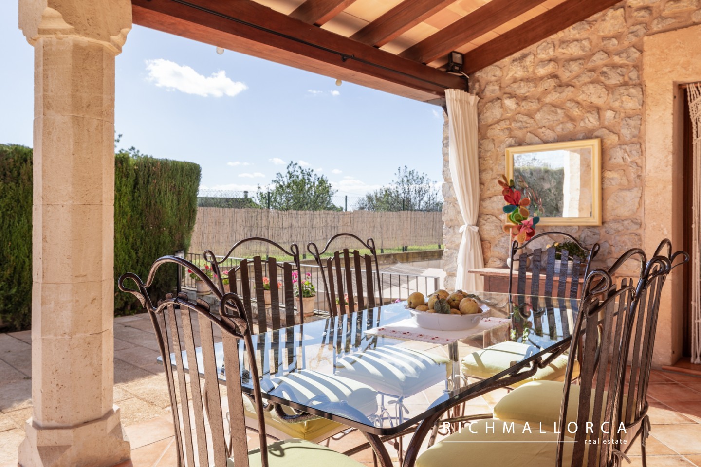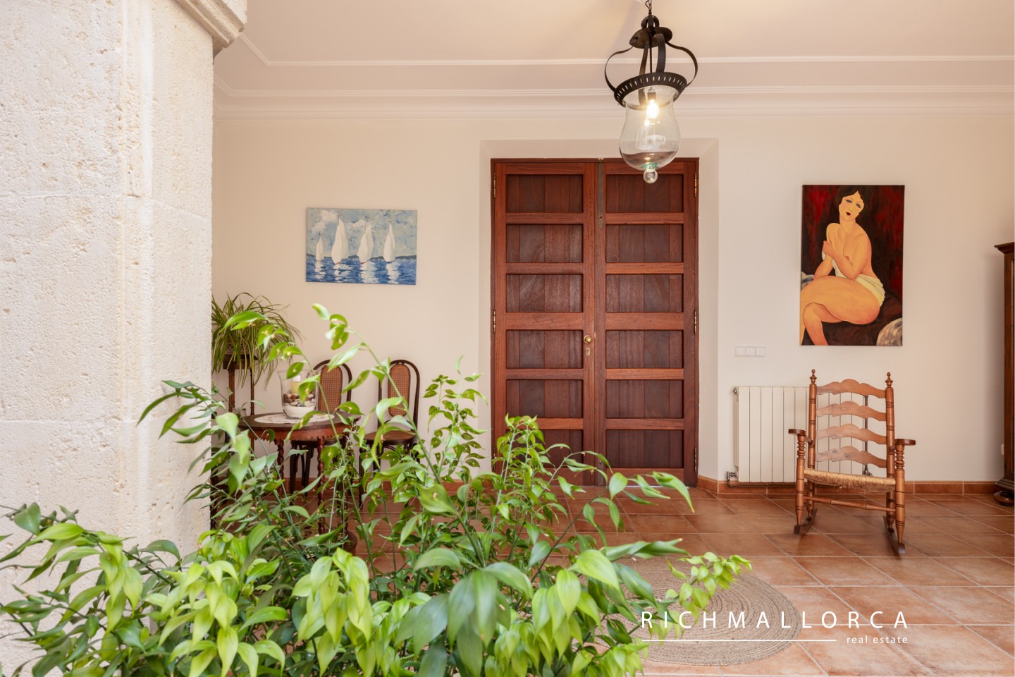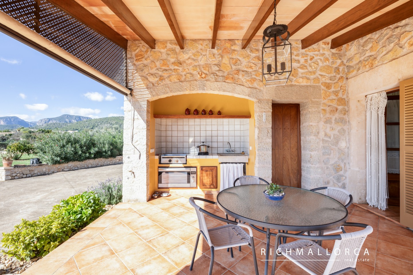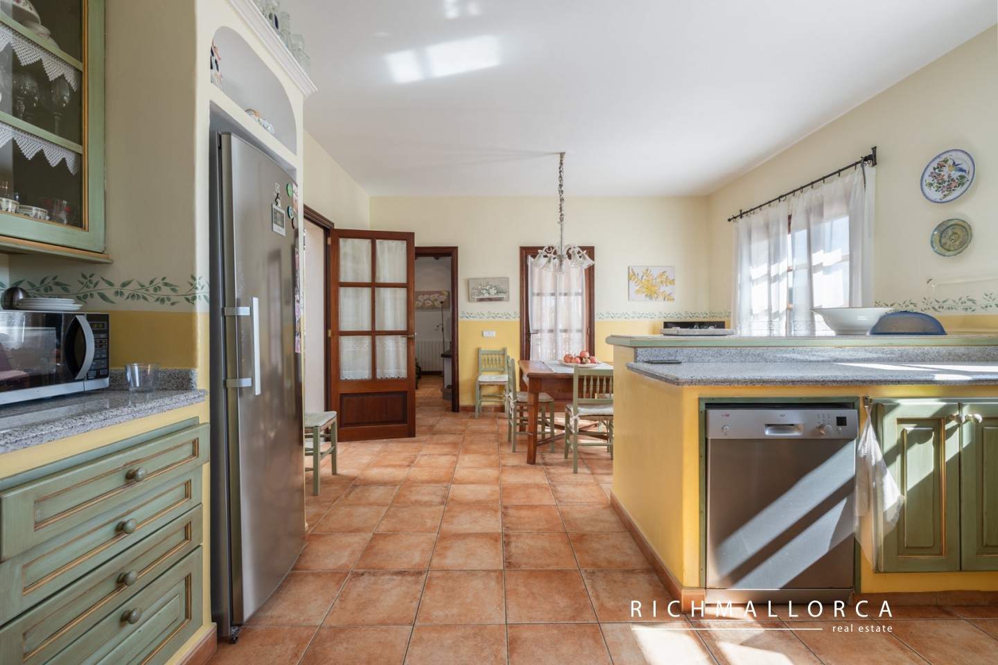 A spacious and beautifully crafted residence offering 572 m² of constructed space across two main living floors plus a basement, set on a private 5.600 m² rustic plot between Lloseta and Inca. The property features a large garage for two cars, a bright living and dining area with fireplace, a fully equipped kitchen with pantry, a laundry room, one bedroom and a bathroom on the main level, along with several outdoor terraces for year-round enjoyment. On the south side of the house, an inviting terrace hosts a summer kitchen with gas barbecue. The jewel of the home is a traditional Mallorcan central patio with natural light and a water cistern, forming the heart of the property and connecting the different living spaces.