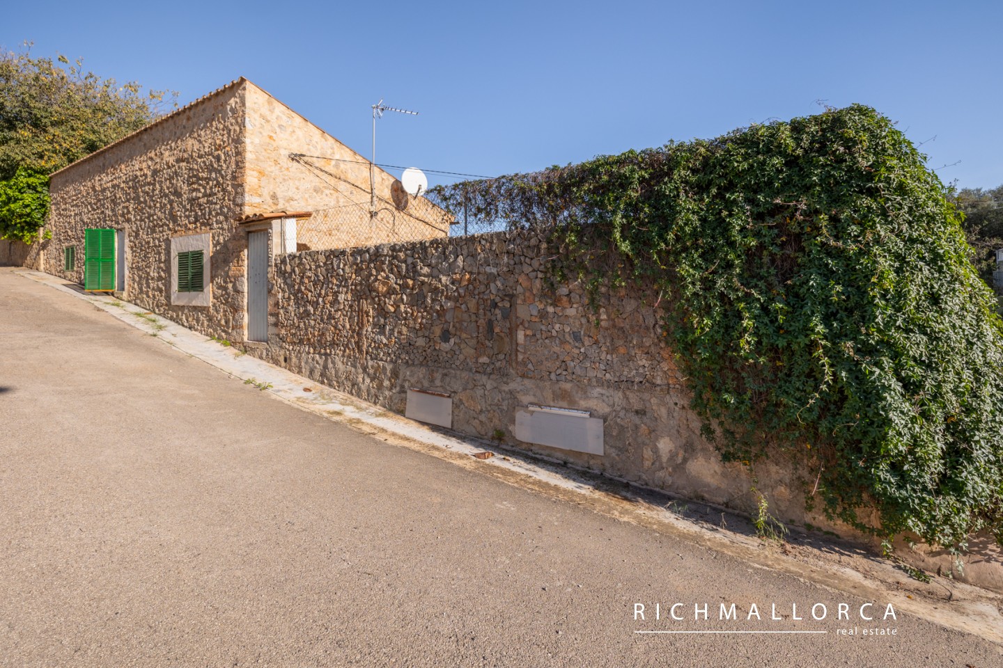 Currently, the land features an old stone house over 100 years old, measuring 91 m², along with additional structures totaling 204 m². It also includes a water cistern with a capacity of approximately 7,000 liters.